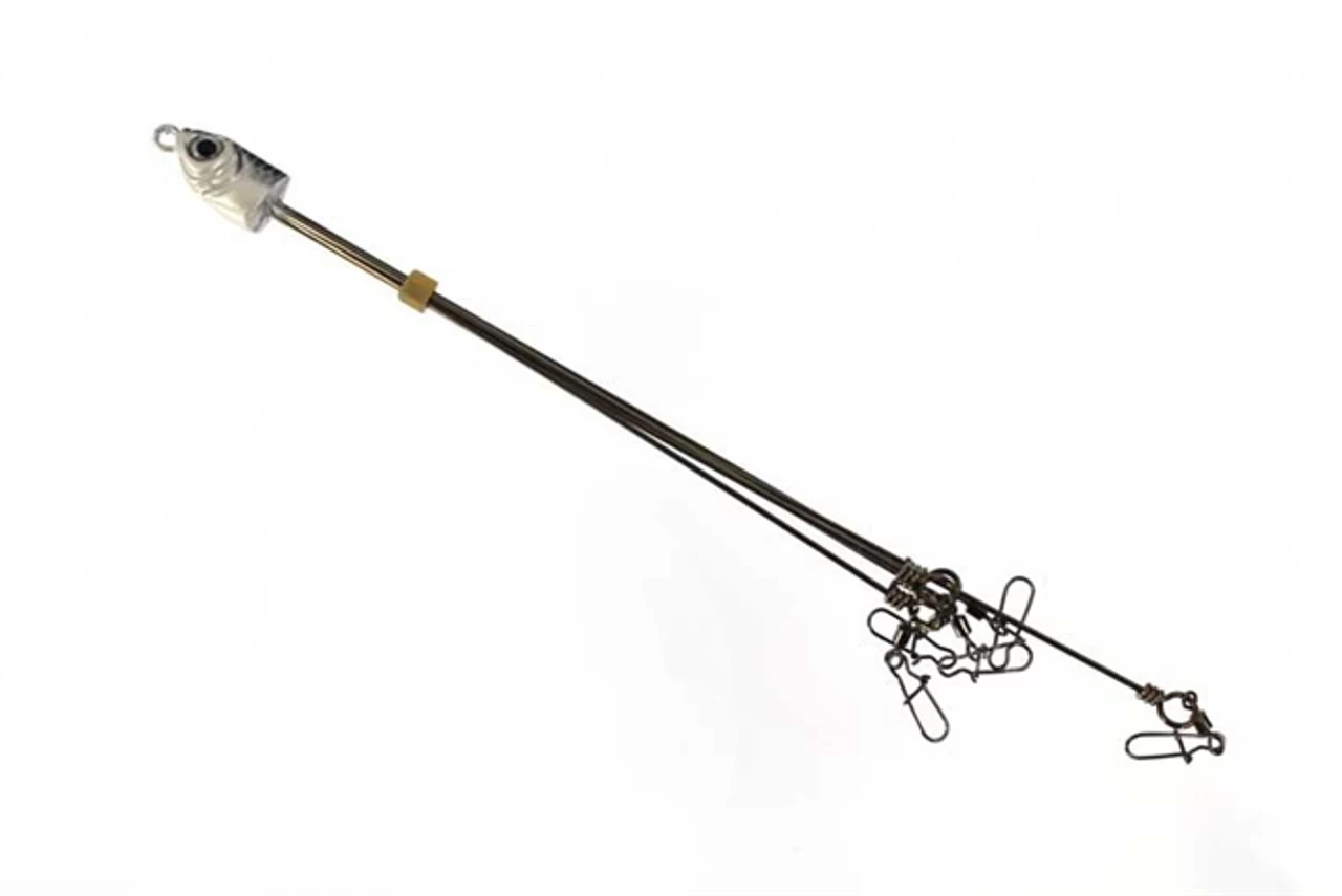 The sniper is the bait that’s going to fool big fish time and time again. It features a hand painted tin head and strengthened brown camo stainless steel wire. Has compact 60 lb swivels that keep the bait from tangling, and dual lock snaps to hold the hook on tight. The sniper works best on schooling fish that feed on breaks, points, and flats. Like its 7 prong big brother the Sniper 5 prong is a fish catching machine, and perfect for those days when need a little more subtle presentation!