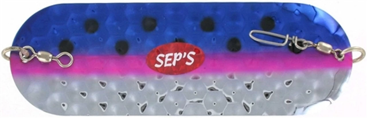 The Sep’s 2/0 Pro Dodger is a trolling dodger commonly employed by anglers trolling lures for Kokanee, Lake Trout and Salmon. The 2/0 Pro Dodgers, from Sep’s Fishing, are one of the most popular choices when trolling at slow speeds due to its’ erratic action, flash and vibration – all transmitted to the trailing lure to attract strikes from big Kokanee or Trout. Some anglers have found this dodger to be a great choice for halibut or stripers when fishing the bay. The flash and action of Sep’s Pro Dodger is really going to attract attention from any nearby fish and ultimately lead them to striking the seductive action of the trolled lure. The 2/0 size of the Pro Dodger measures 2″ wide by 6″ long which is perfect for both freshwater Kokanee and lake trout, but also proves effective when used in the bay for several species. We offer the 2/0 size of the Sep’s Pro Dodger in several of the most popular colors.