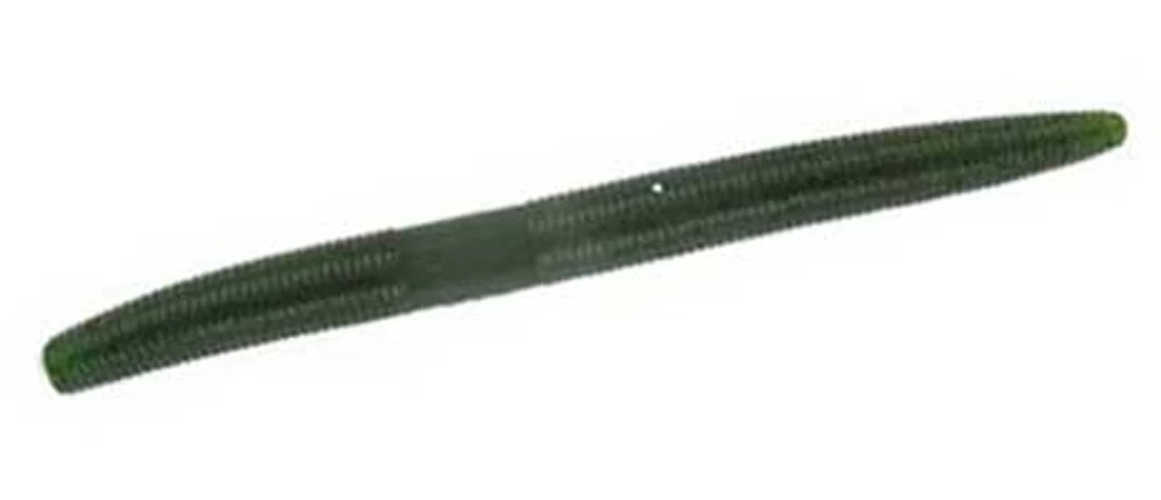 Most anglers prefer a 3/0 extra wide gap (EWG) hook when fishing the 4″ version Texas-rigged with 8- to 12-pound test fluorocarbon line and a medium or medium-heavy action rod. This combination of light line and a medium action rod allows for long casts and positive “pressure” hook sets – a swift jerk is not recommended. The 4″ model of Senko is also an excellent choice for the wacky rig using a dedicated wacky worm hook and 5-8lb fluorocarbon. Fluorocarbon line is preferred over monofilament because its density allows it to sink with the bait and does not interfere with the fluttering action the Senko is famous for. When weights are desired, 1/8- to 1/4-ounce screw-lock weights work best.
